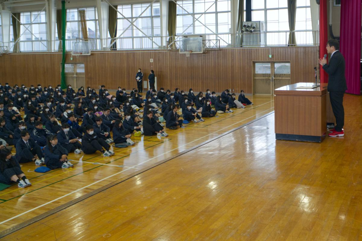 「今朝はグラウンドが真っ白になるほどの寒さでしたが、生徒たちは元気に登校していました。あの寒さの中で頑張って来たみんなの姿を嬉しく思いました。冬休み中、大きな事故や病気の報告もなく、こうして安心して集まれたことに感謝しています」
