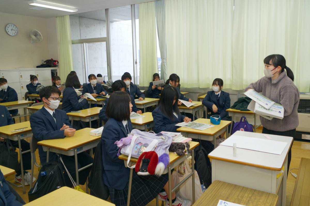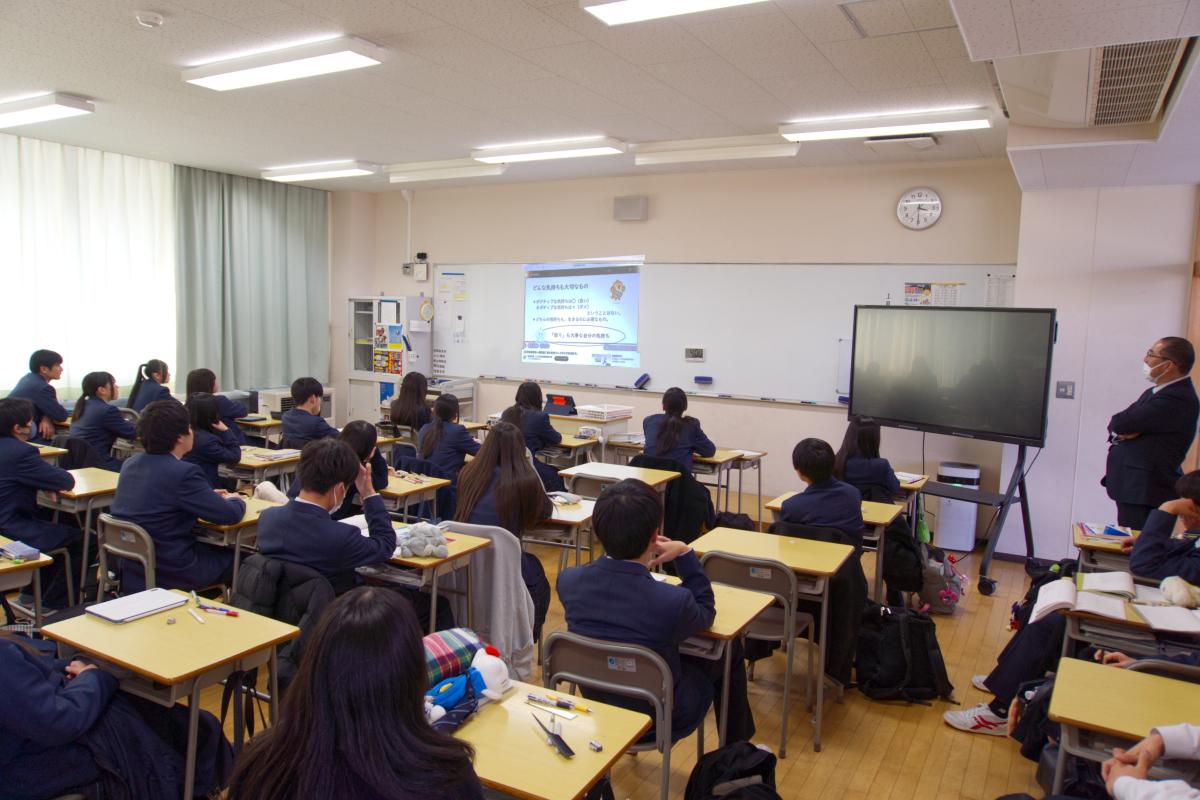 講演の中では、ガーナの美しい風景や人々の温かさ、日本との文化の違いなどが紹介され、生徒たちは興味津々の様子。また、先生ご自身の進路選択の経験や、ガーナでの活動を通して見えてきた「本当に大切なこと」についてのお話は、これからの進路を考える上で多くの示唆を与えてくれました。